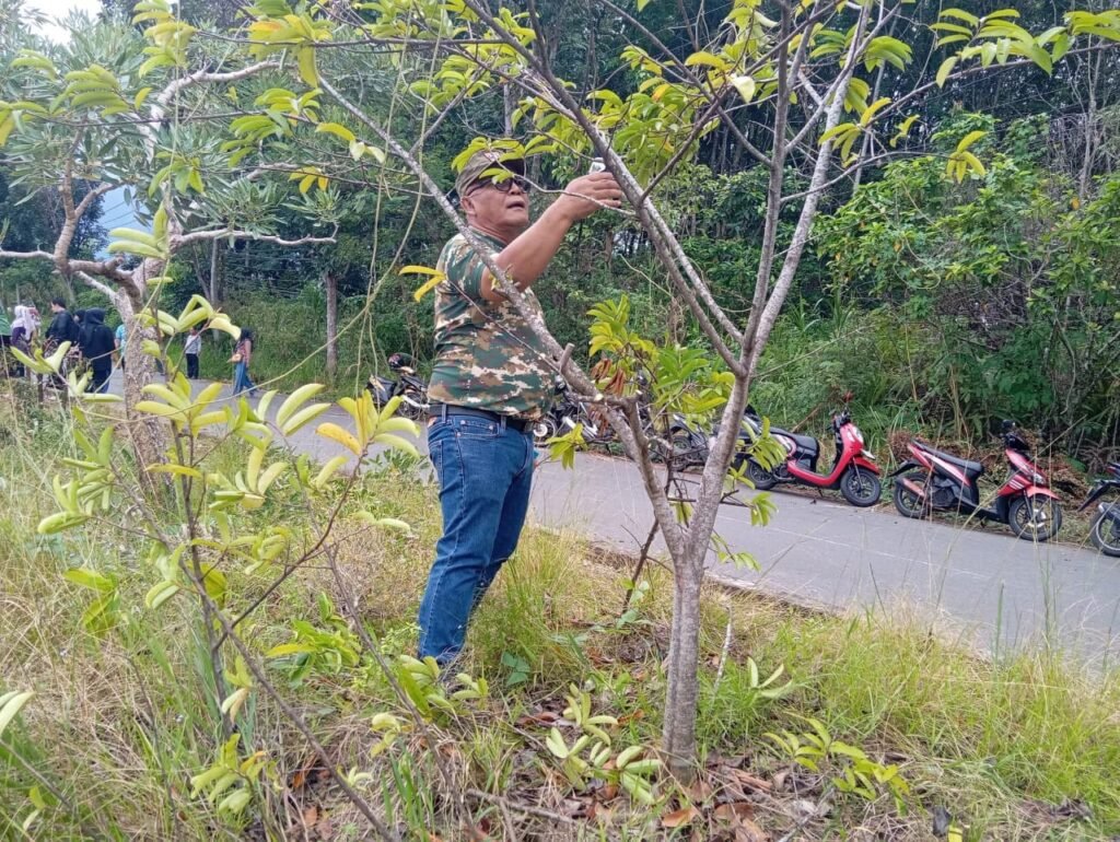 Kegiatan gotong royong yang dimulai pukul 07.00 WIB itu juga terpantau berlangsung di sepanjang taman Jalur 32, Rabu (22/10/2025).
