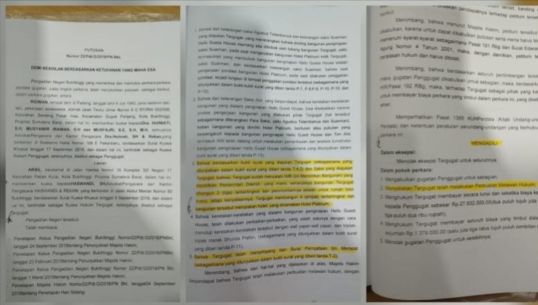 Pantauan di lapangan, juga mengancam keselamatan warga di sekitarnya. Pengadilan Negeri Bukittinggi melalui Putusan Nomor 22/Pdt.G/2018/PN Bkt telah menyatakan, bahwa proyek tersebut terbukti melakukan perbuatan melawan hukum dan melanggar ketentuan izin yang berlaku, Kamis (16/10/2025).