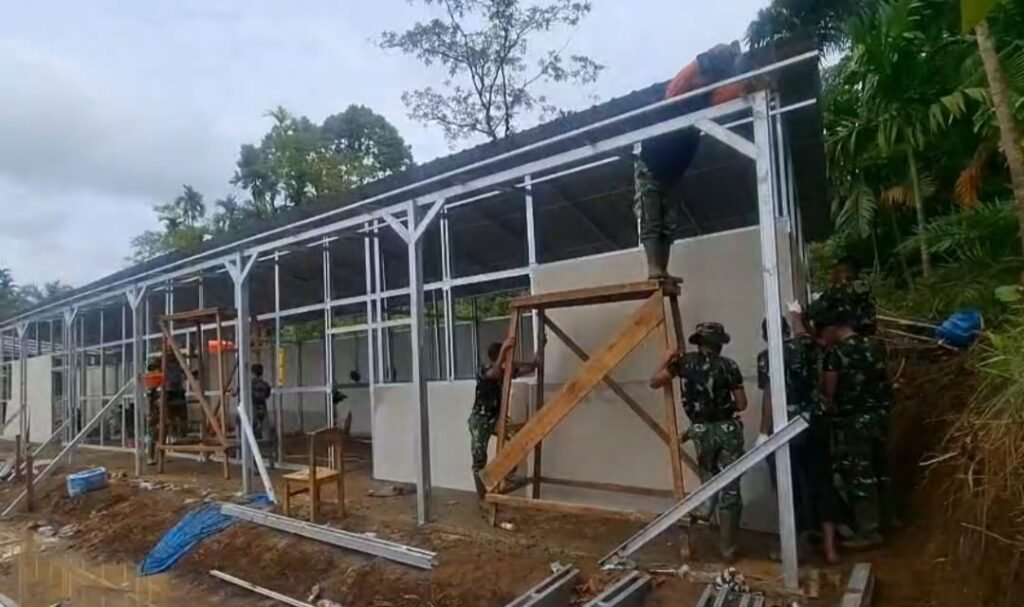 Jajaran TNI AD Melalui Kodim XX/TIB Laksanakan Kegiatan Pembangunan Huntara