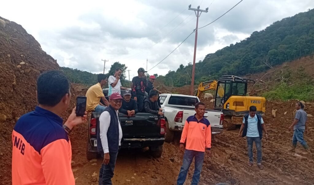 Walaupun kondisi medan yang sulit bekas tanah longsor di Tinggam, Nagari Sinuruik, tidak menyurutkan semangat para anggota BPBD Kabupaten Pasaman Barat untuk melangkah ke jalan yang sebahagian masih berlumpur dan sulit ditempuh.