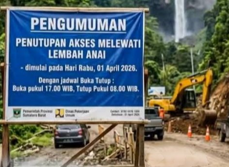 Padang, Sumbarjaya.com ~ Jalur Lembah Anai kembali diberlakukan sistem buka-tutup yang dimulai 1 April 2026, untuk mendukung proses pengerjaan. Pengaturan ini dilakukan untuk menjaga keselamatan pengguna jalan selama perbaikan berlangsung.
