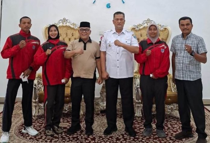 Bupati Pasaman Barat, Yulianto di dampingi Wakil Bupati M. Ihpan, Ketua Pertina Pasbar Muhammad Guntara, pengurus, serta Ketua KONI Pasbar Khensy Pasadana melepas keberangkatan tiga atlet.