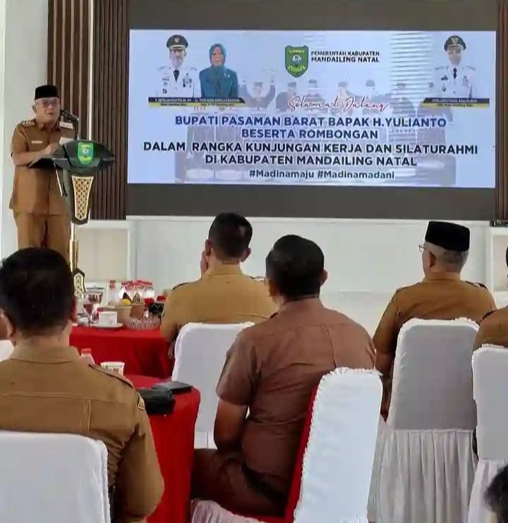 Dalam sambutannya, Bupati Yulianto menyampaikan bahwa kunjungan tersebut bertujuan mempererat hubungan antar pemerintah daerah yang selama ini telah terjalin dengan baik, mengingat Pasaman Barat dan Mandailing Natal merupakan daerah yang bertetangga langsung.