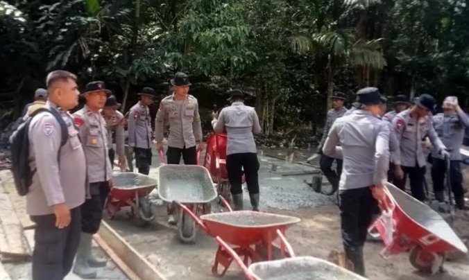 Personel Polres Pesisir Selatan, Personel Brimob, Serta Pemda, Laksanakan Pembangunan HUNTARA