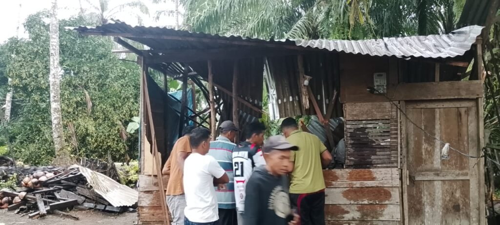 Pasaman Barat, Sumbarjaya.com ~ Cuaca buruk hujan lebat disertai angin kencang yang melanda wilayah Bancah Kasai, Jorong Rimbo Janduang, Nagari Lingkuang Aua Baru, Kecamatan Pasaman, Kabupaten Pasaman Barat sore ini membawa duka bagi masyarakat setempat, Selasa (17/3/2026).
