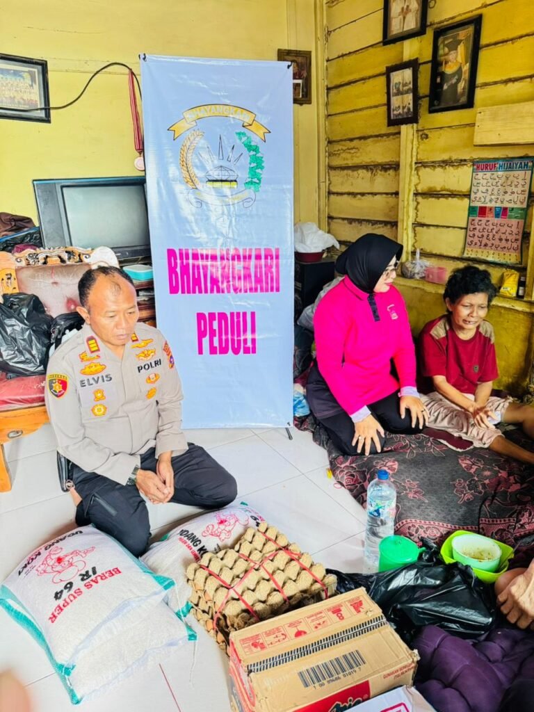 Dalam kegiatan tersebut, tim yang dipimpin AKP Elvis Susilo didampingi Ketua Bhayangkari Ranting Sungai Beremas Ny. Fitri Elvis, serta personel Bripka Fajar dan Bhabinkamtibmas Bripka Aprima Heldi, menyerahkan bantuan berupa sembako.