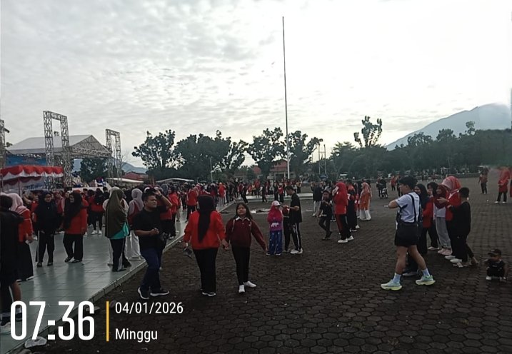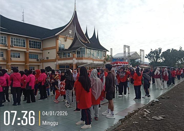 Acara yang diadakan di halaman Kantor Bupati Pasaman Barat diikuti oleh ribuan peserta dari berbagai kalangan masyarakat, aparatur pemerintah, dan organisasi masyarakat, Minggu (4/1/2026).
