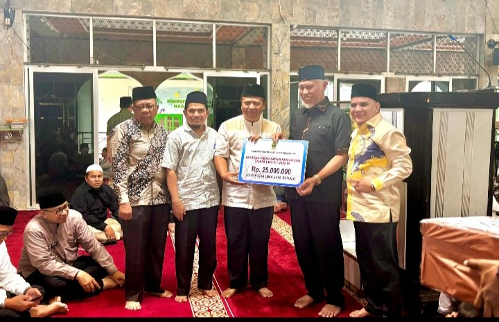 Sebagai bentuk dukungan terhadap pengembangan sarana ibadah, di akhir kegiatan Gubernur menyerahkan bantuan secara simbolis bantuan hibah Safari Ramadhan Tahun 1447 H/2026 M sebesar Rp25.000.000 kepada Pengurus Masjid Raya Saniangbaka.