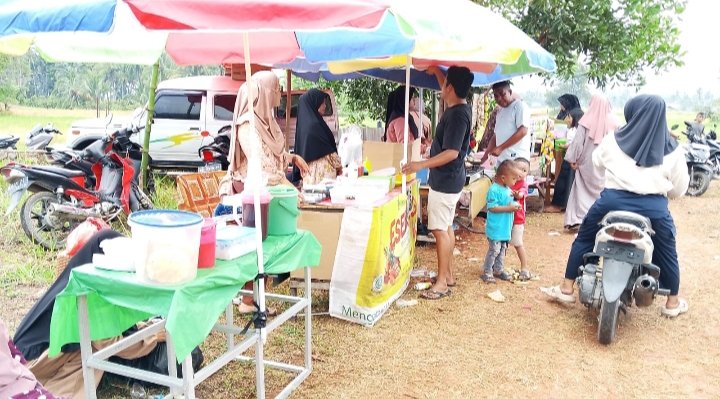 Momentum ini dimanfaatkan maksimal oleh pelaku UMKM. Sejak pagi, lapak-lapak warga yang berjejer di sekitar arena dipadati pembeli.