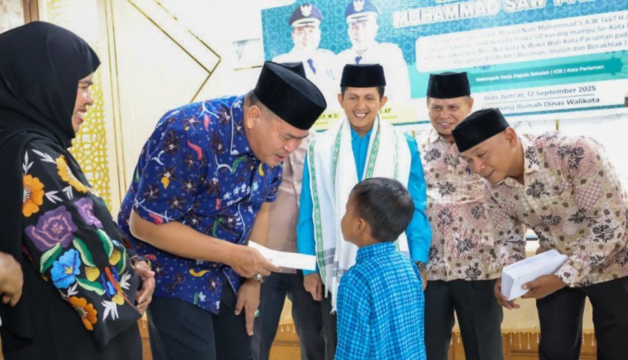 Pariaman, Sumbarjaya.com ~ Wali Kota Pariaman Yota Balad telah menyerahkan infaq dari Guru dan Tenaga Kependidikan (GTK) kepada 80 orang murid Sekolah Dasar (SD) se- Kota Pariaman di Balairung Pendopo Balaikota Pariaman, Jumat (12/9/2025).